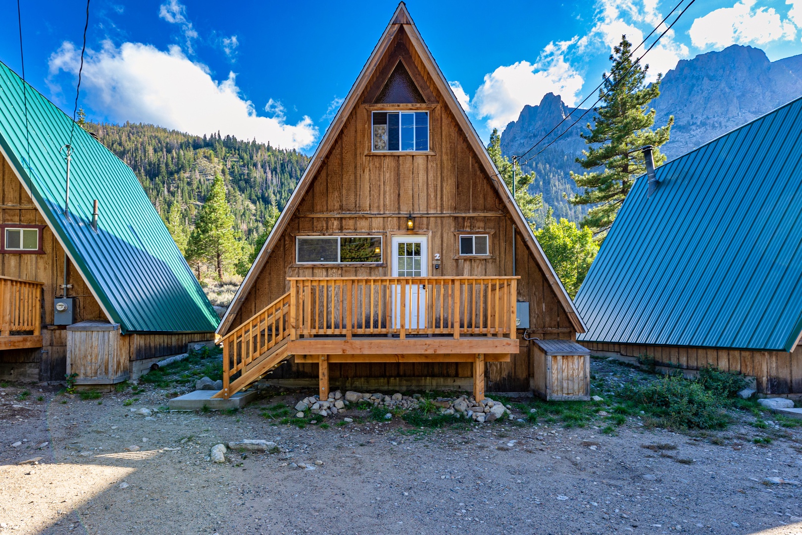 Experience an A-Frame-style cabin nestled at the foot of Carson Peak and offering breathtaking vistas of the Ansel Adams Wilderness.