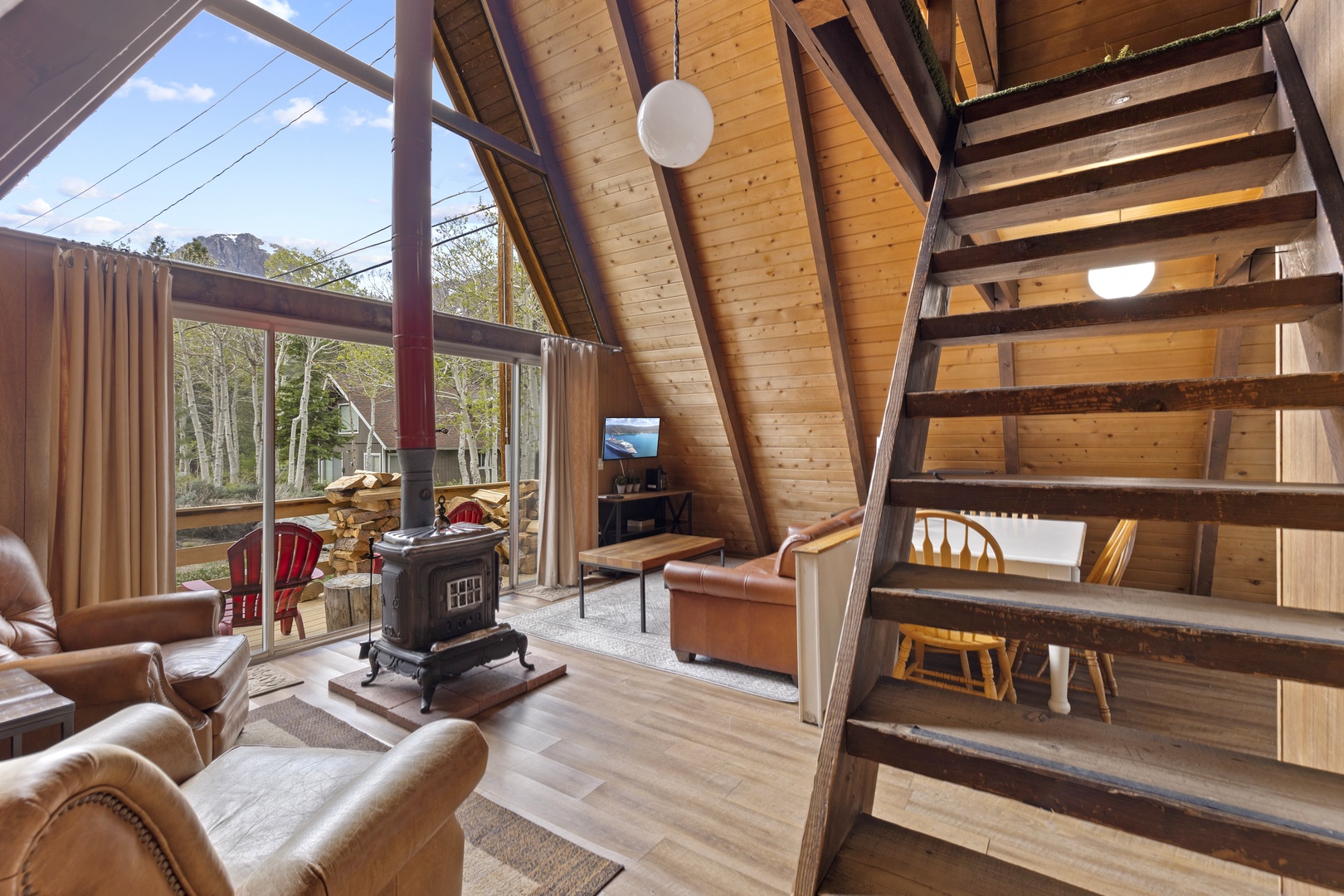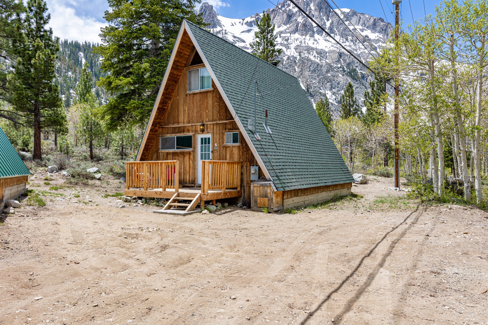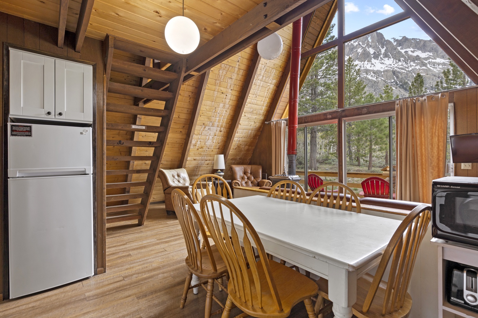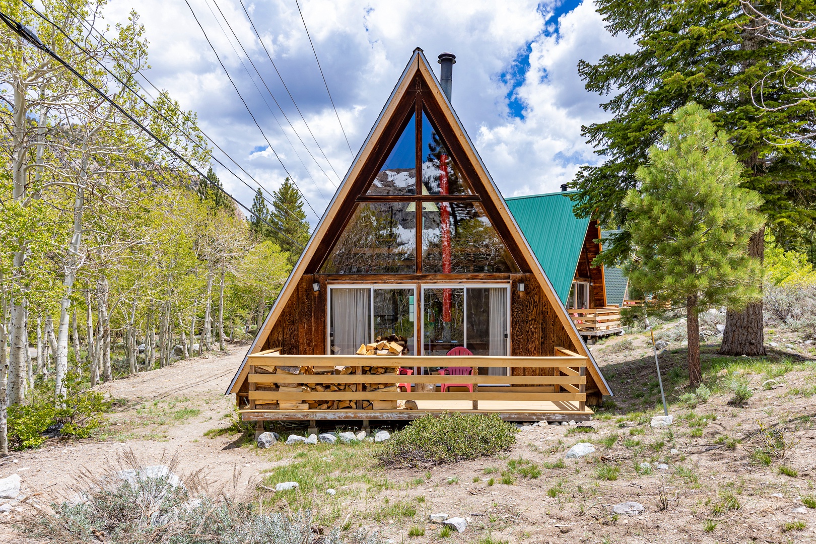 Experience an A-Frame-style cabin nestled at the foot of Carson Peak and offering breathtaking vistas of the Ansel Adams Wilderness.