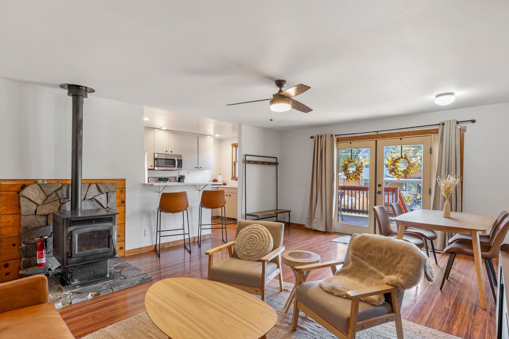 The Hoppy Hollow is a charming and cozy vacation spot in June Lake! With two bedrooms and one bath, it's a great option for a small group or family. The large deck and spacious yard provide the perfect opportunity for outdoor relaxation and perhaps even some barbecues or stargazing. Being conveniently located next to the local brewery is a delightful bonus for those who enjoy craft beer.