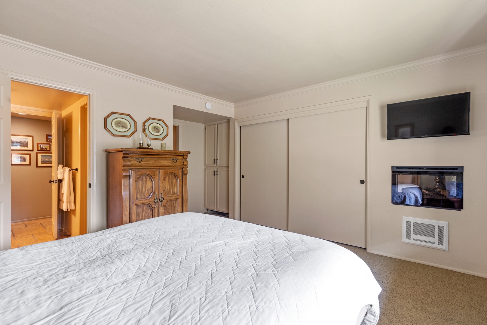 Step into this timeless condo, and you'll instantly feel at ease. The hallway, thoughtfully designed with ample storage, leads to two inviting rooms with a full bathroom nestled in between. Both rooms offer delightful and picturesque views, and each features a wall fireplace and a TV. The master bedroom boasts a queen bed, as does the second bedroom, and there's an additional queen pullout sofa in the living room.