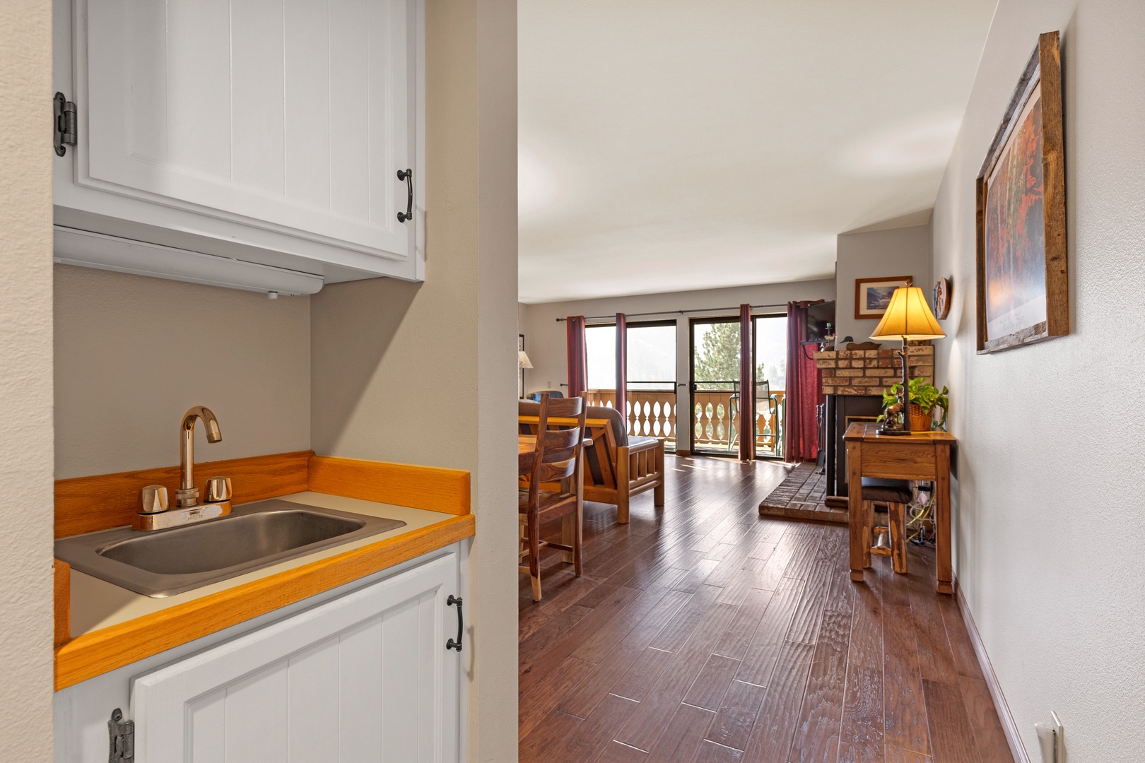Lovely location and sparkling clean condo! The kitchen was well stocked for making full meals. We will definitely come back the next time we travel to June Lake.