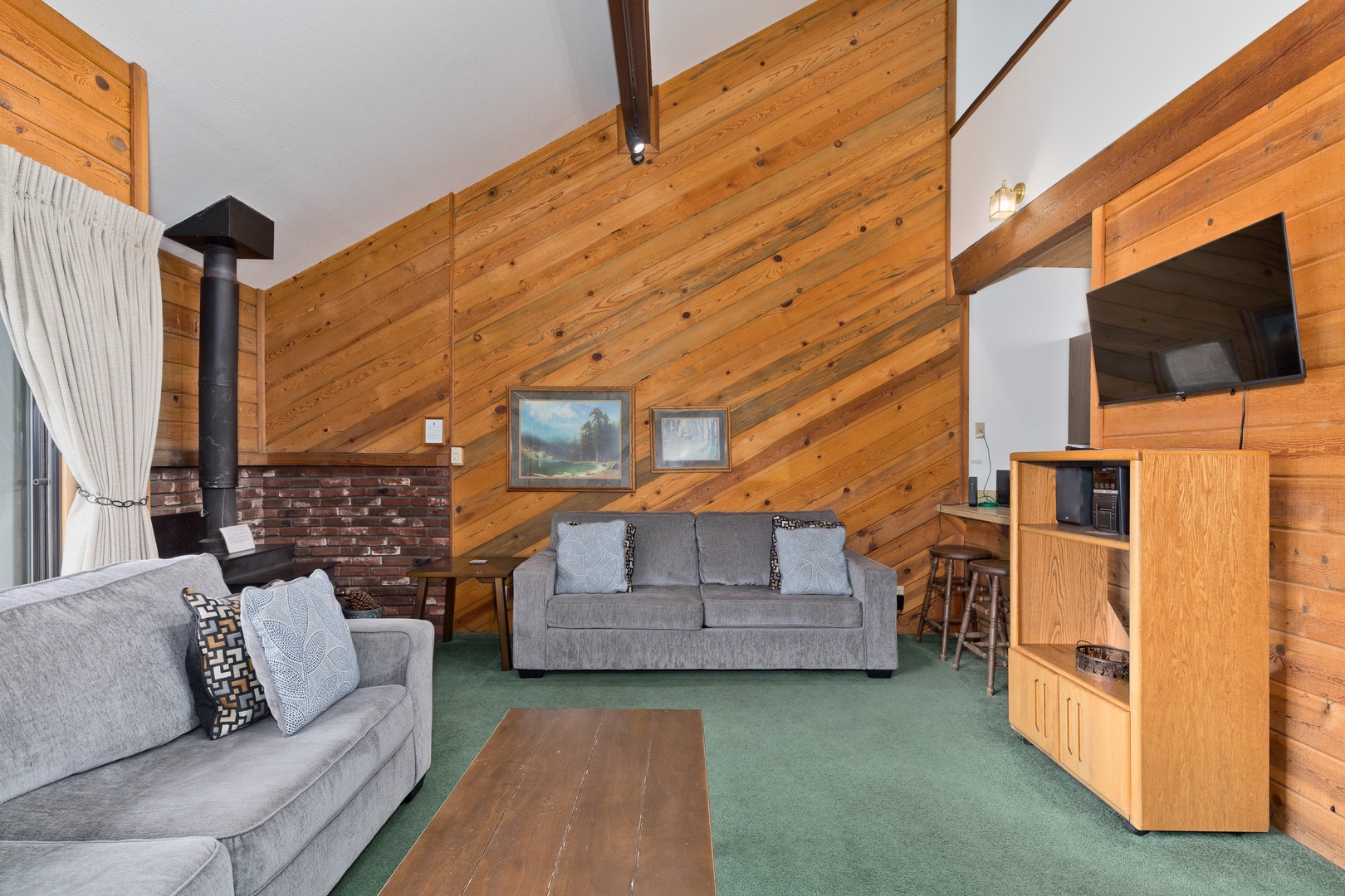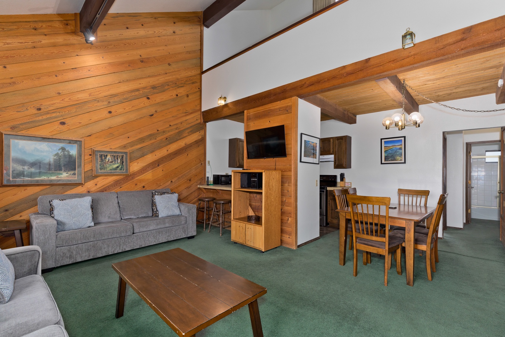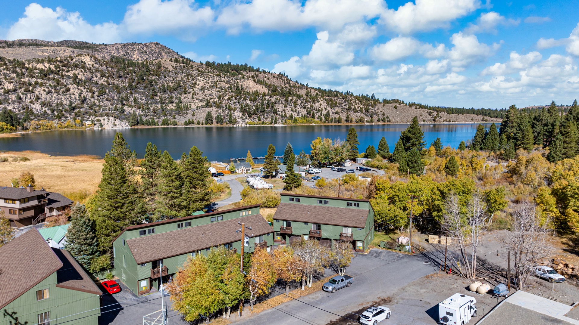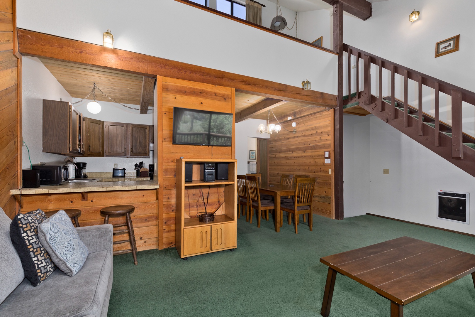 This townhome's location is a highlight, as it's just steps away from the June Lake Marina, granting easy access to water activities, and it's also within walking distance to all the offerings of the June Lake Village. It's a comfortable and well-situated place to enjoy your stay in the area. Note, this condo does not offer a BBQ.