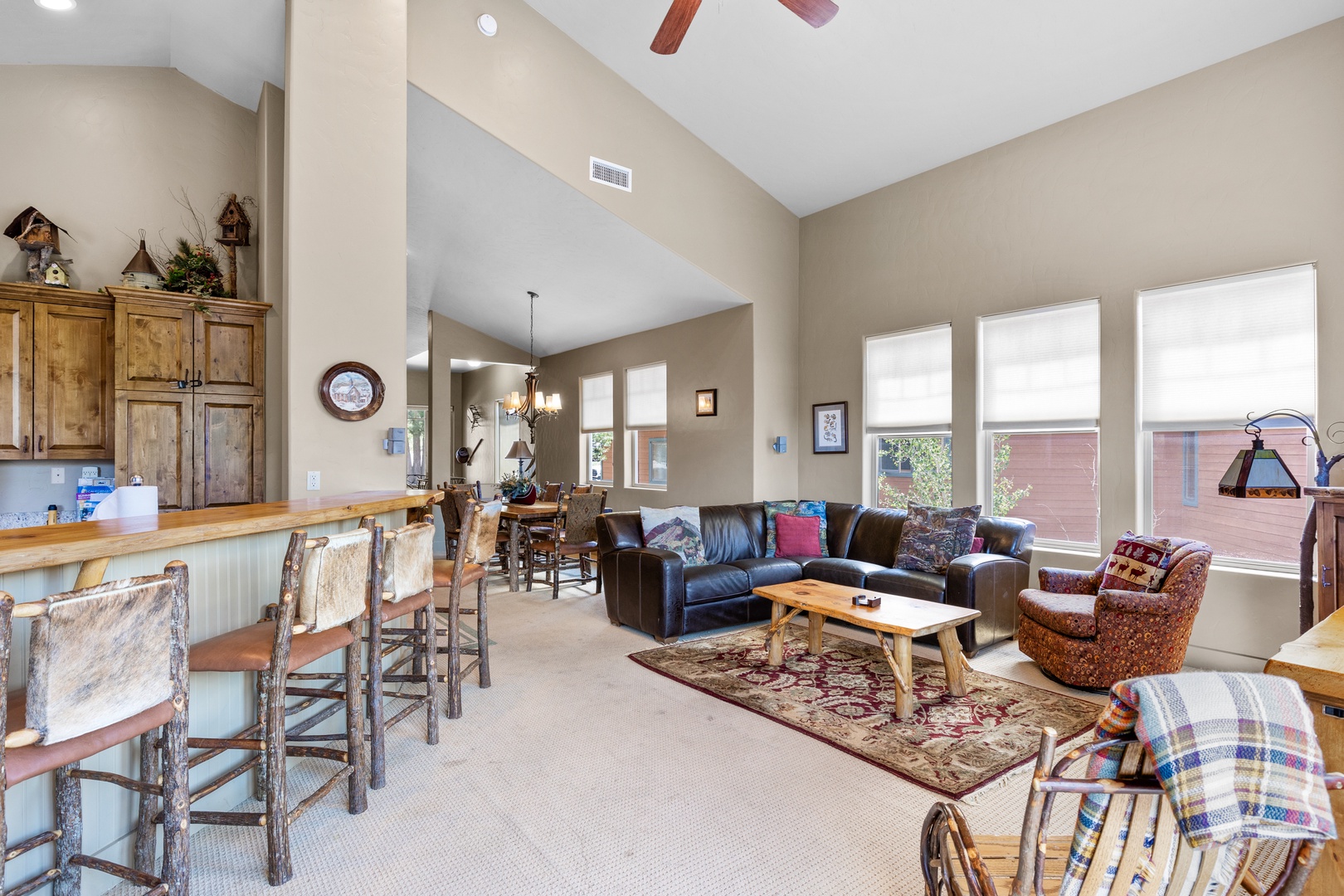 Living area with four bar seats