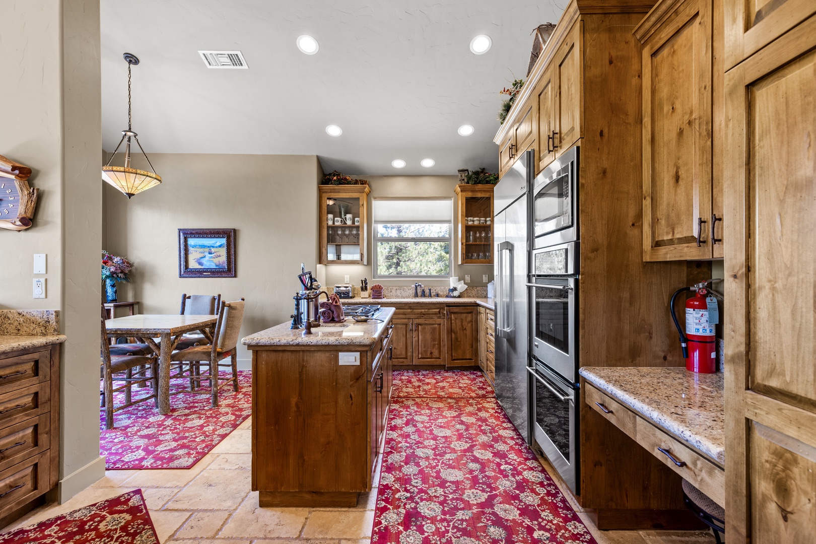 Kitchen with commercial fridge and double ovens