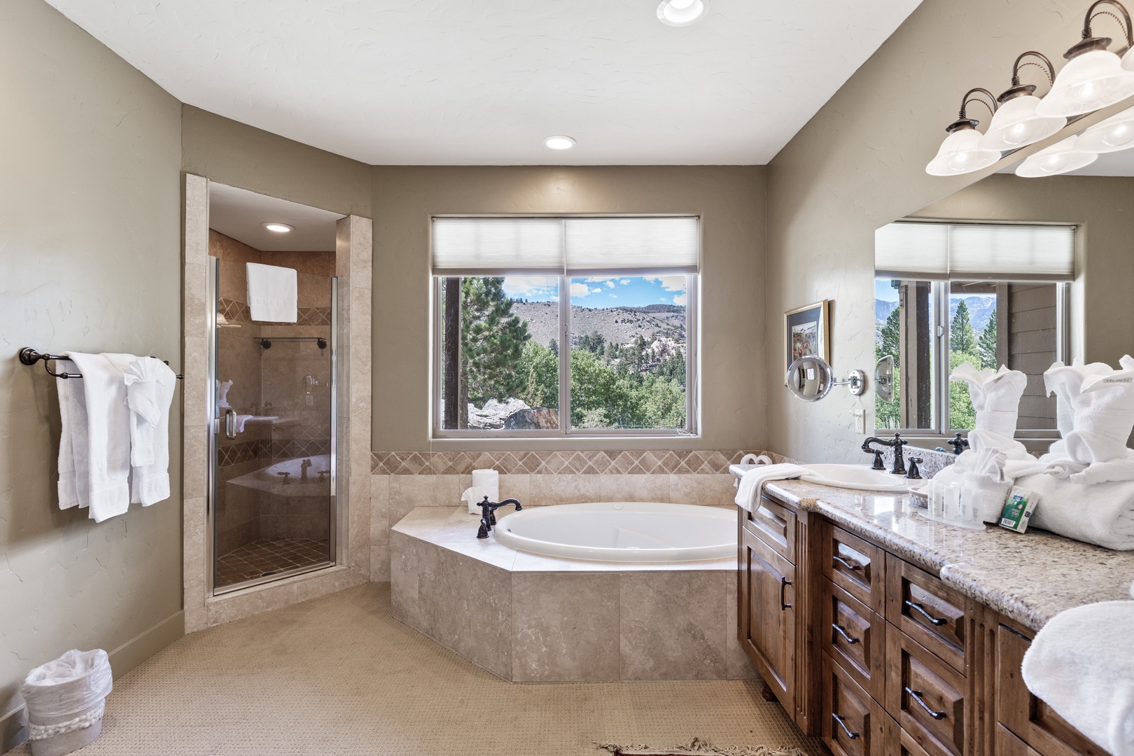 Primary room with separate tub and shower