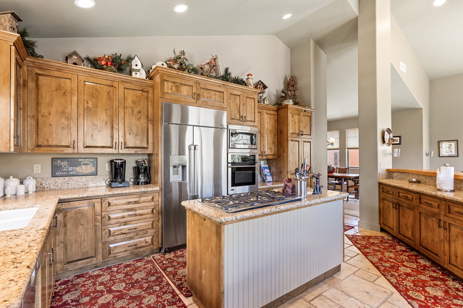 We had a full house with adults and children and had plenty of room. The kitchen was definitely furnished with everything necessary and was a pleasant surprise. We have done several VRBOs and always bring some of our own kitchen things and end up being thankful we do. We needed none of the kitchen things we brought. We enjoyed the home very much, the use of the garage was wonderful and having an extra refrigerator was a huge plus! Loved the home! Felt like home! Would love to stay again!