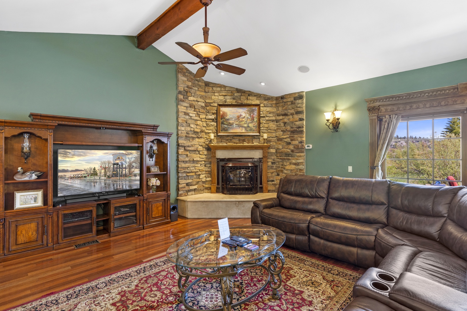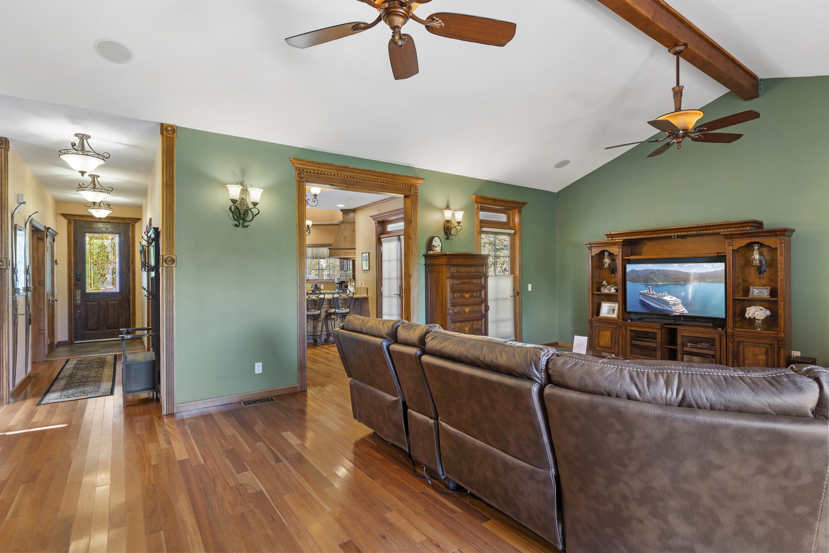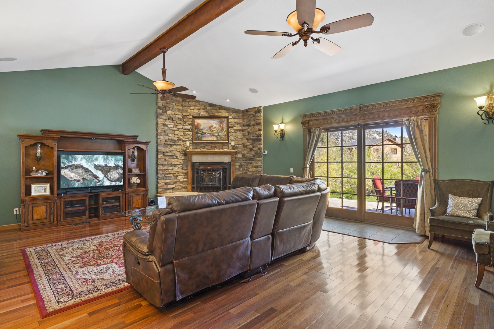As you approach the home, you'll be greeted by its stunning exterior and the large front yard. The outdoor fire pit provides a wonderful gathering spot for family and friends to enjoy the crisp mountain air and the warmth of a crackling fire.