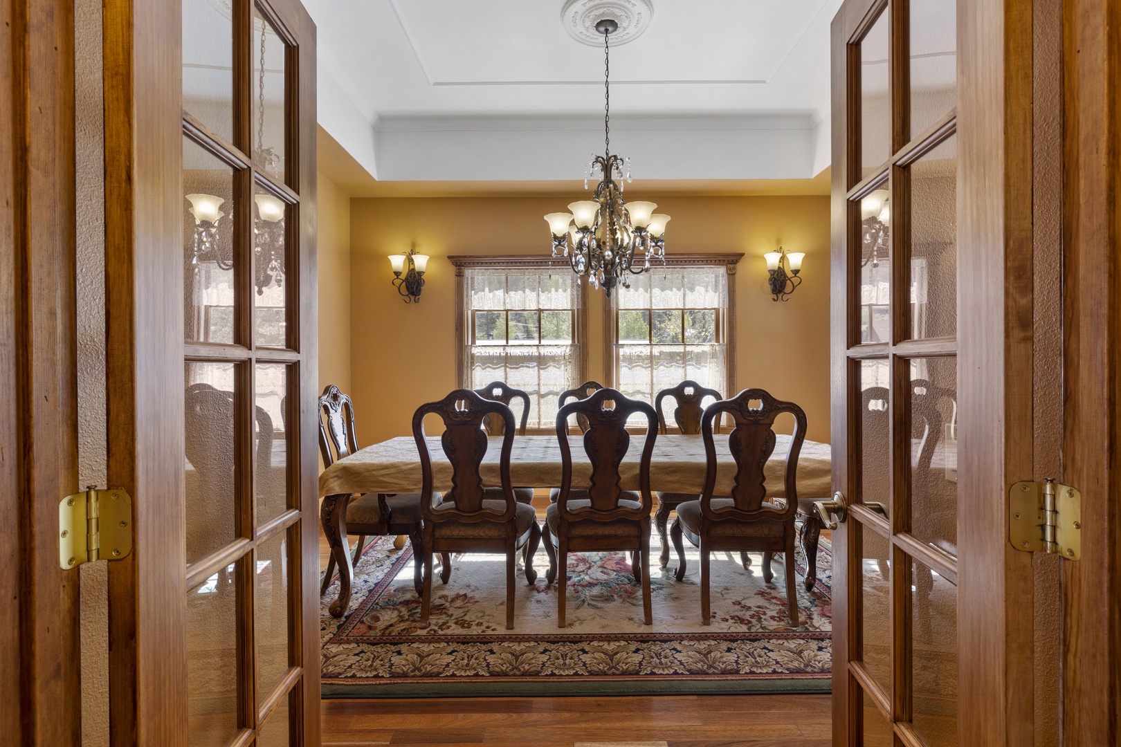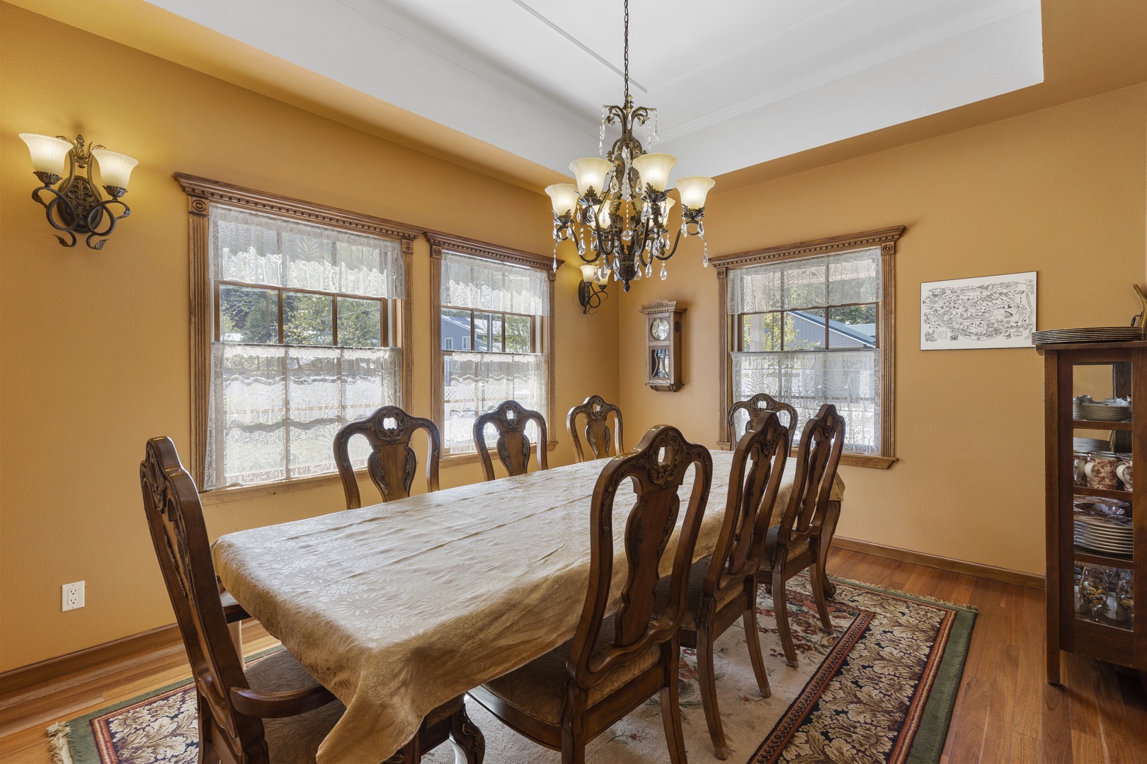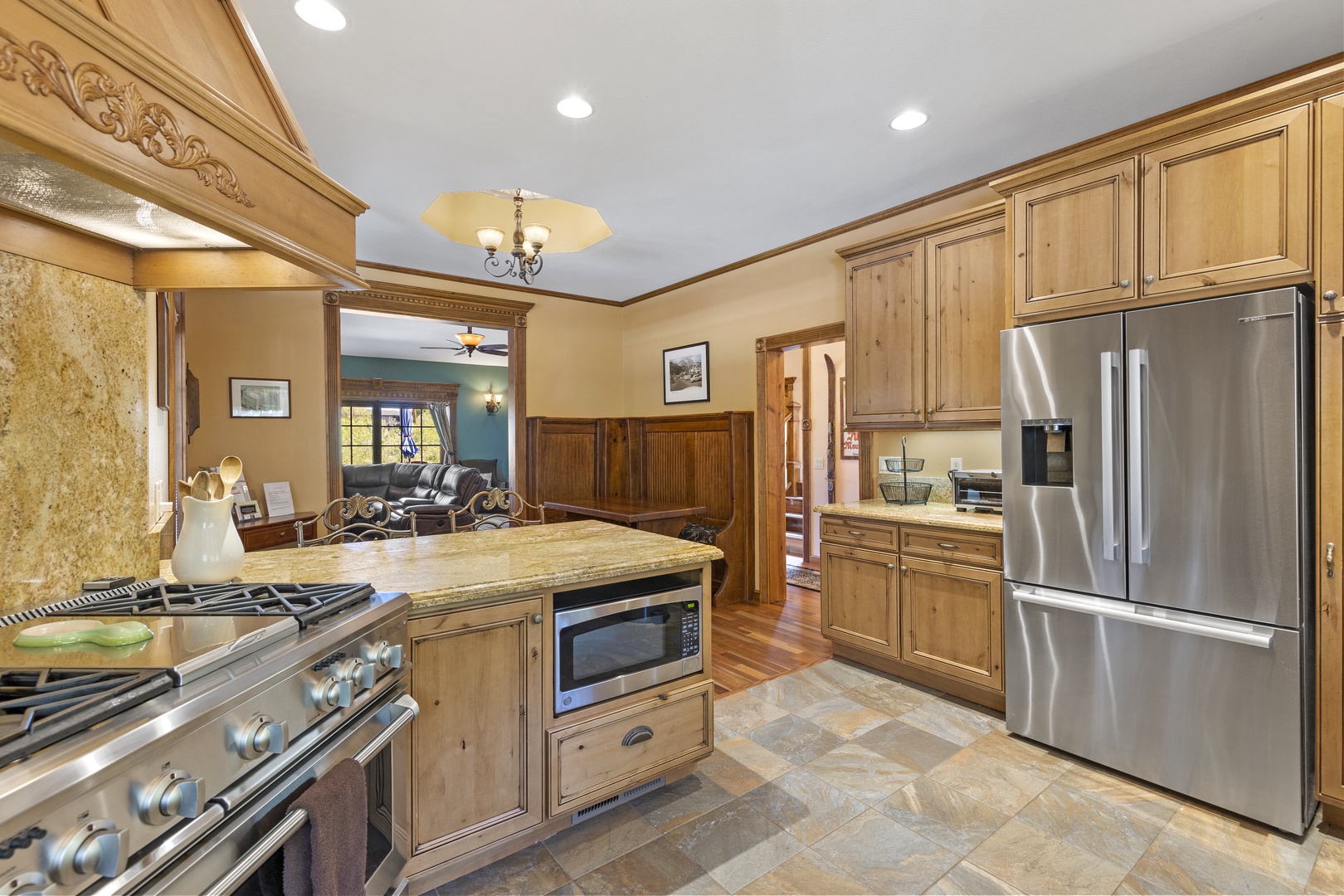 To your left, you'll find the well-appointed kitchen, a dream for home cooks, complete with a convenient dinette area. The kitchen offers all the amenities you need to prepare meals for your family and friends. To the right of the entrance, the formal dining room welcomes you with its inviting ambiance.