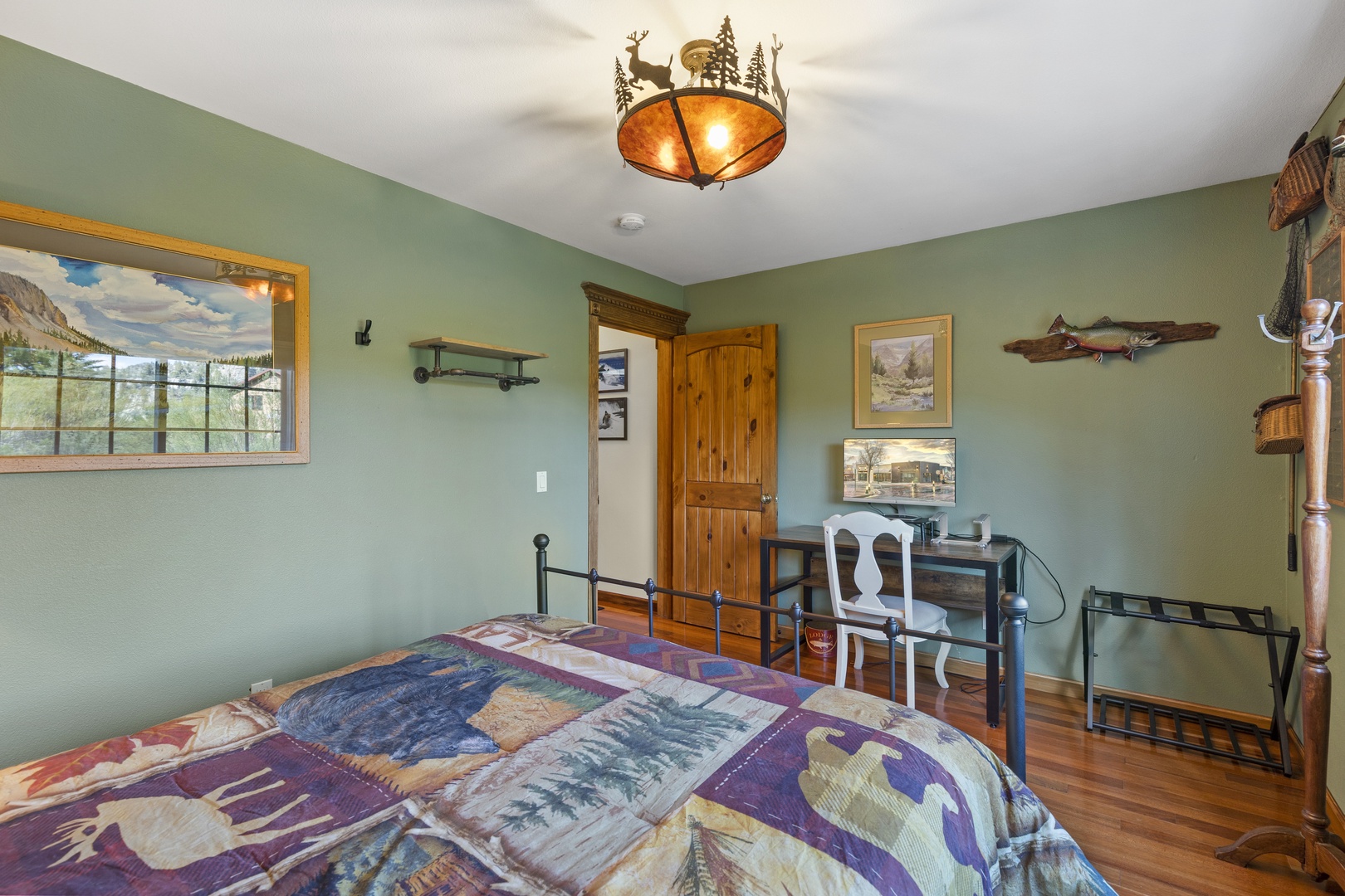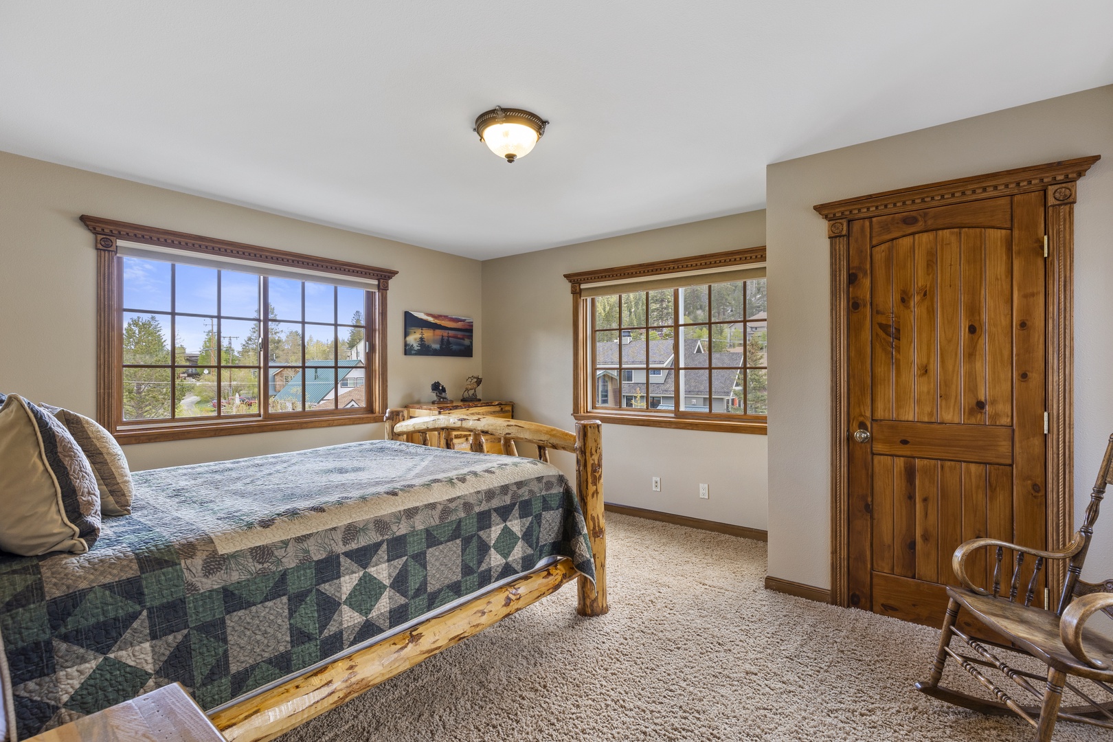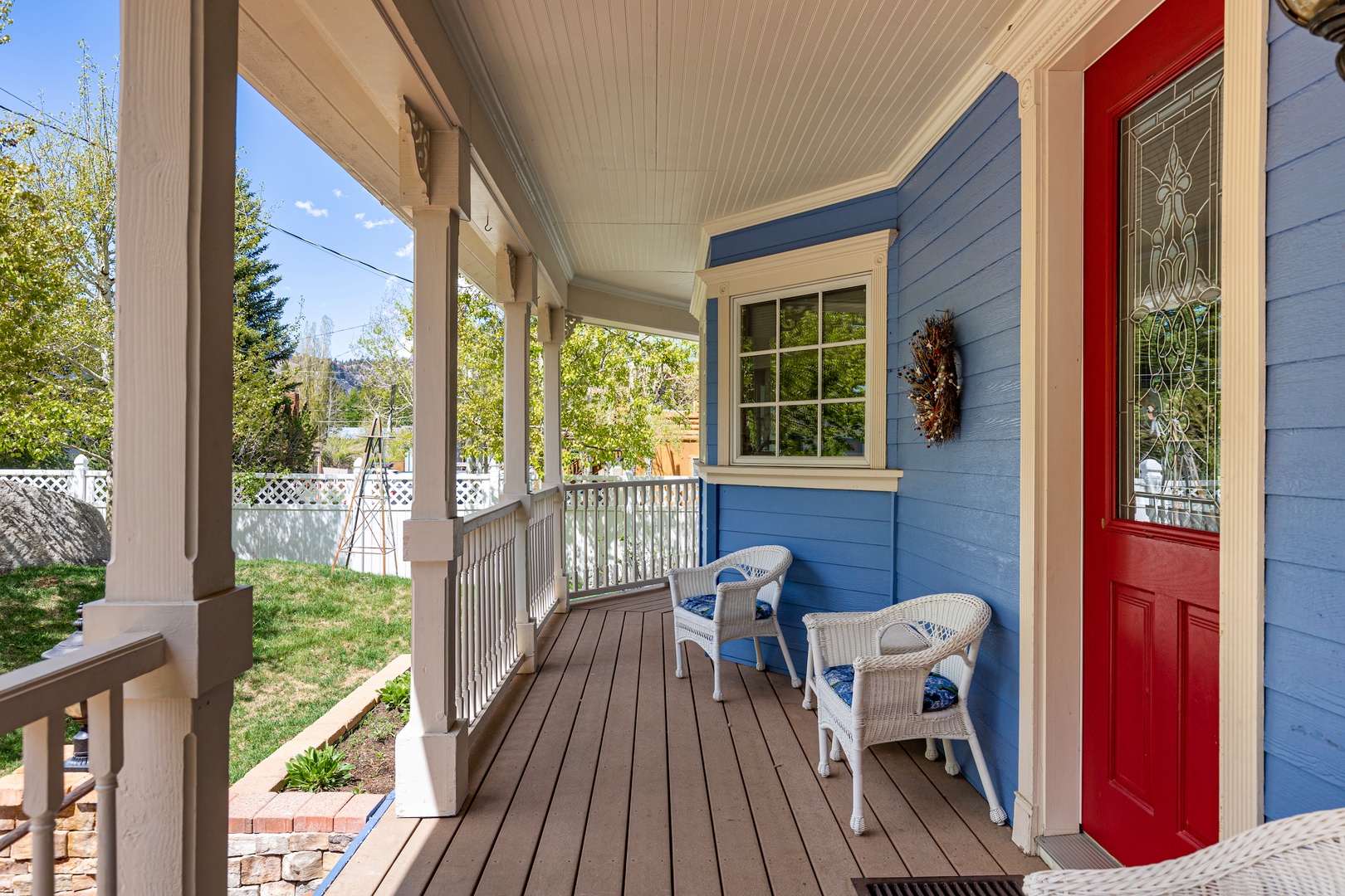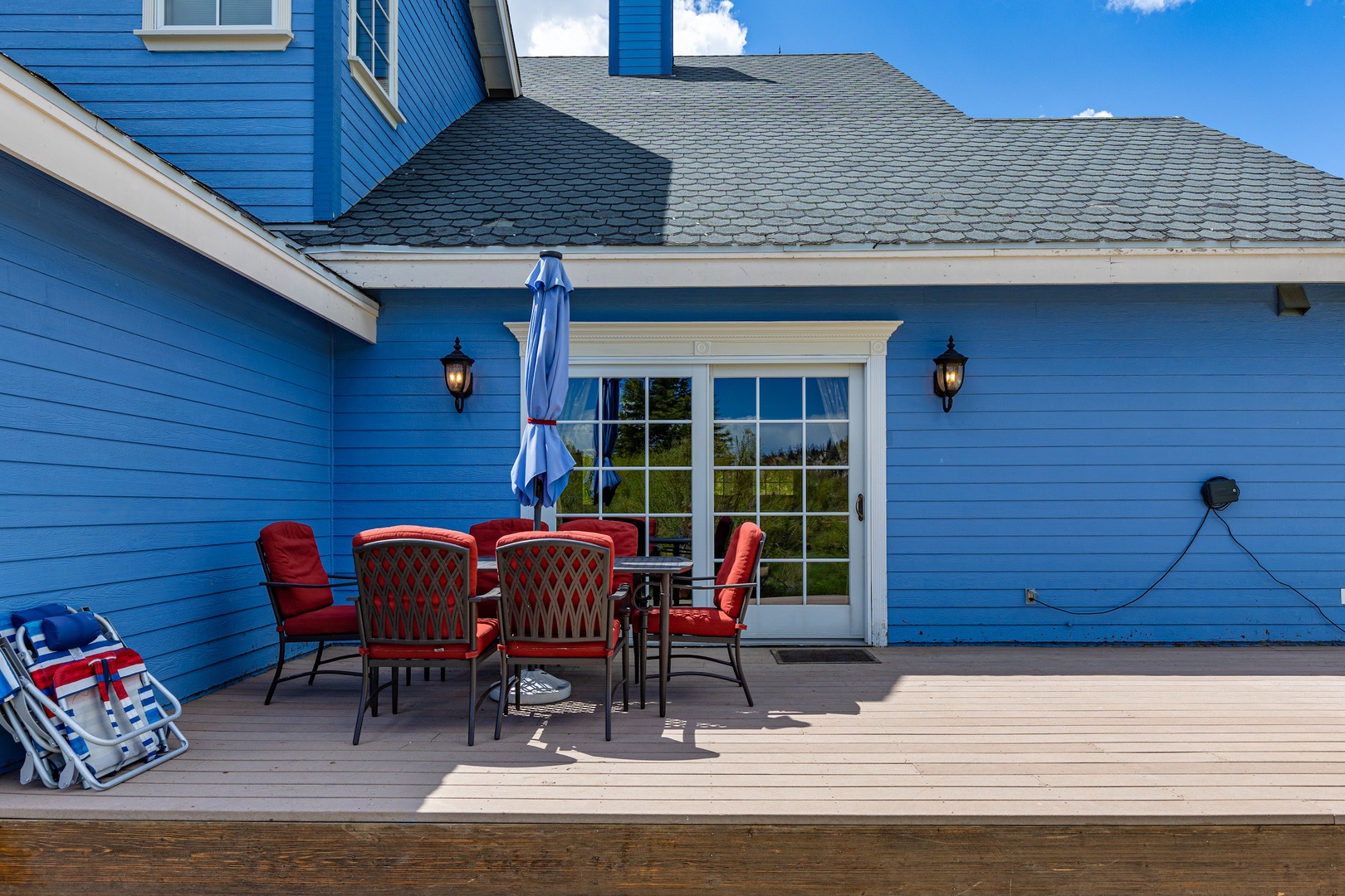In the back of the house, a private deck faces a picturesque meadow that often attracts local mule deer, allowing you to savor the serenity of nature from the comfort of your own retreat.