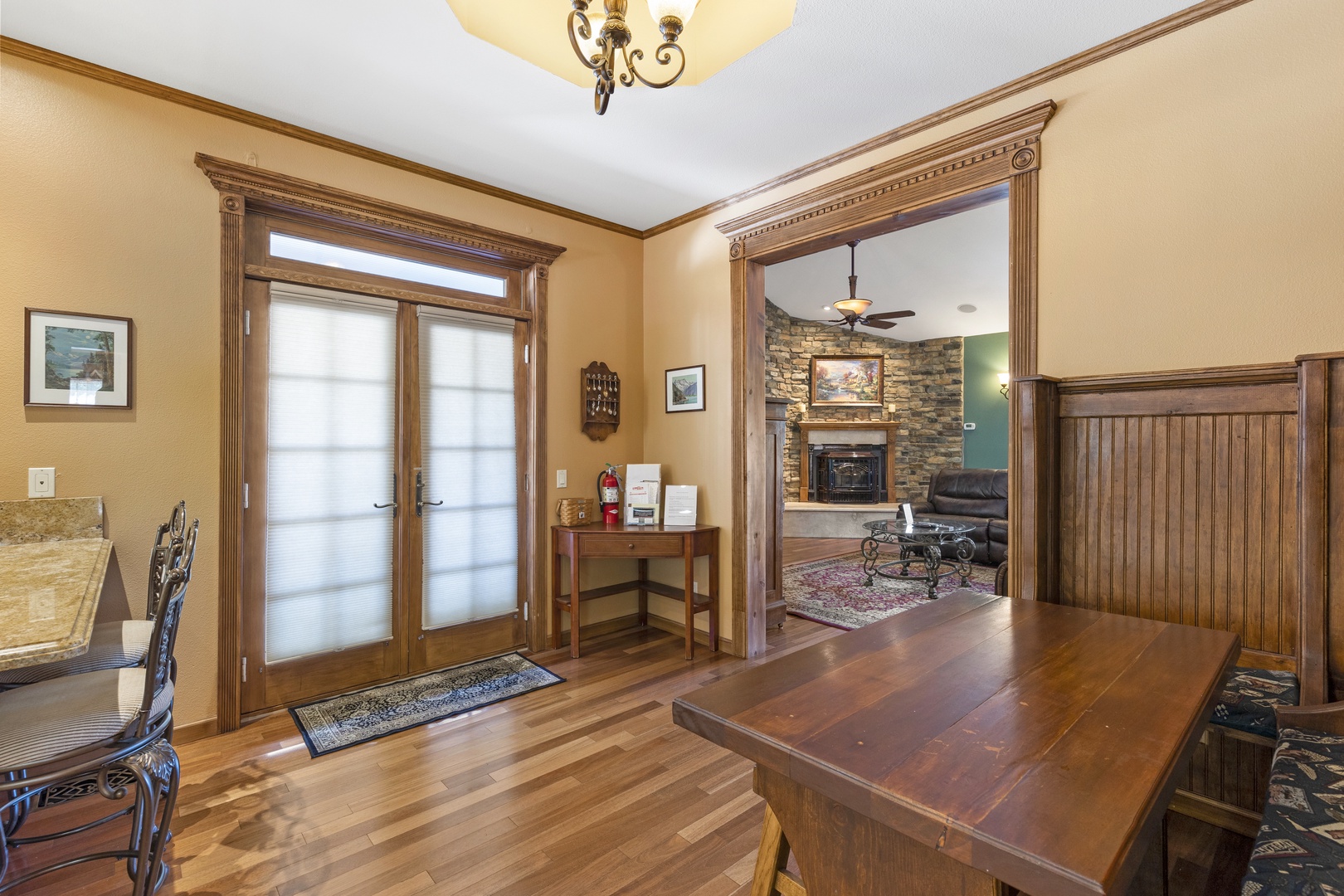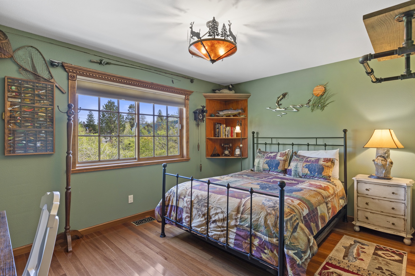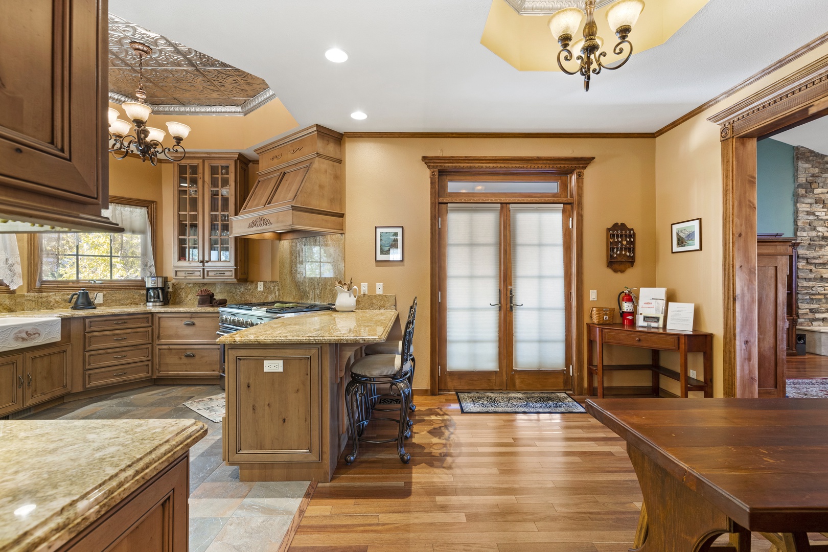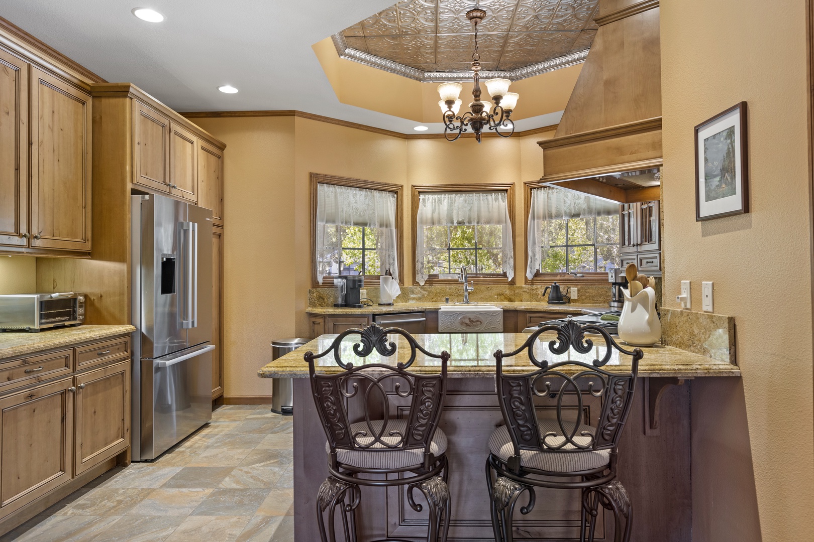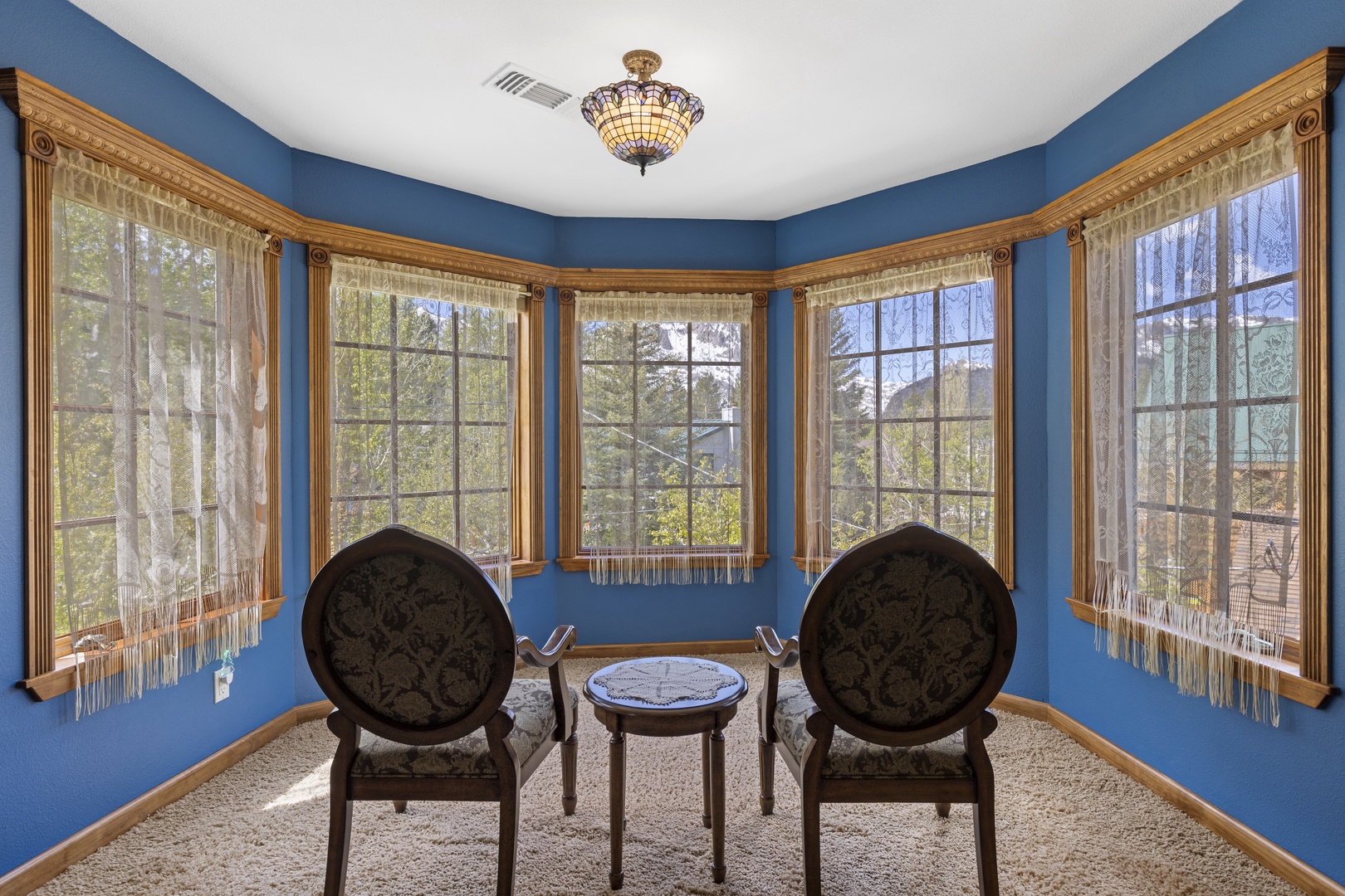 In the back of the house, a private deck faces a picturesque meadow that often attracts local mule deer, allowing you to savor the serenity of nature from the comfort of your own retreat.